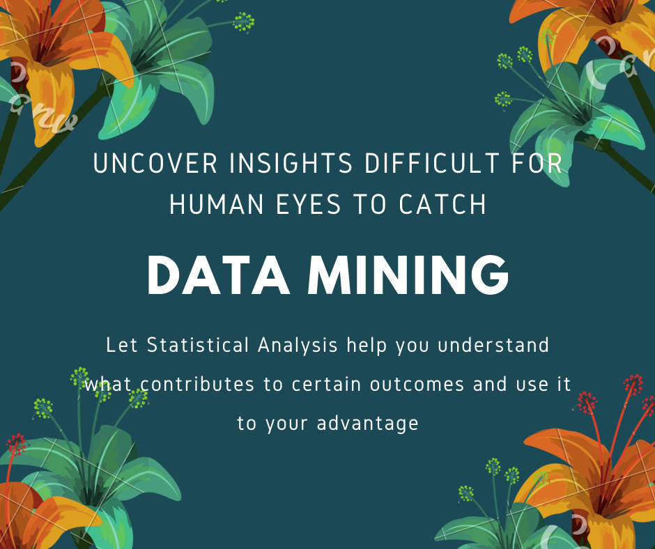 Let Statistical Analysis help you to uncover the hidden relationships in your data that are difficult for human eyes to catch. Don't wonder why some outcomes occurred and use Data mining to help you get precisely the reaosns for the outcomes in a scientific way. Learn More