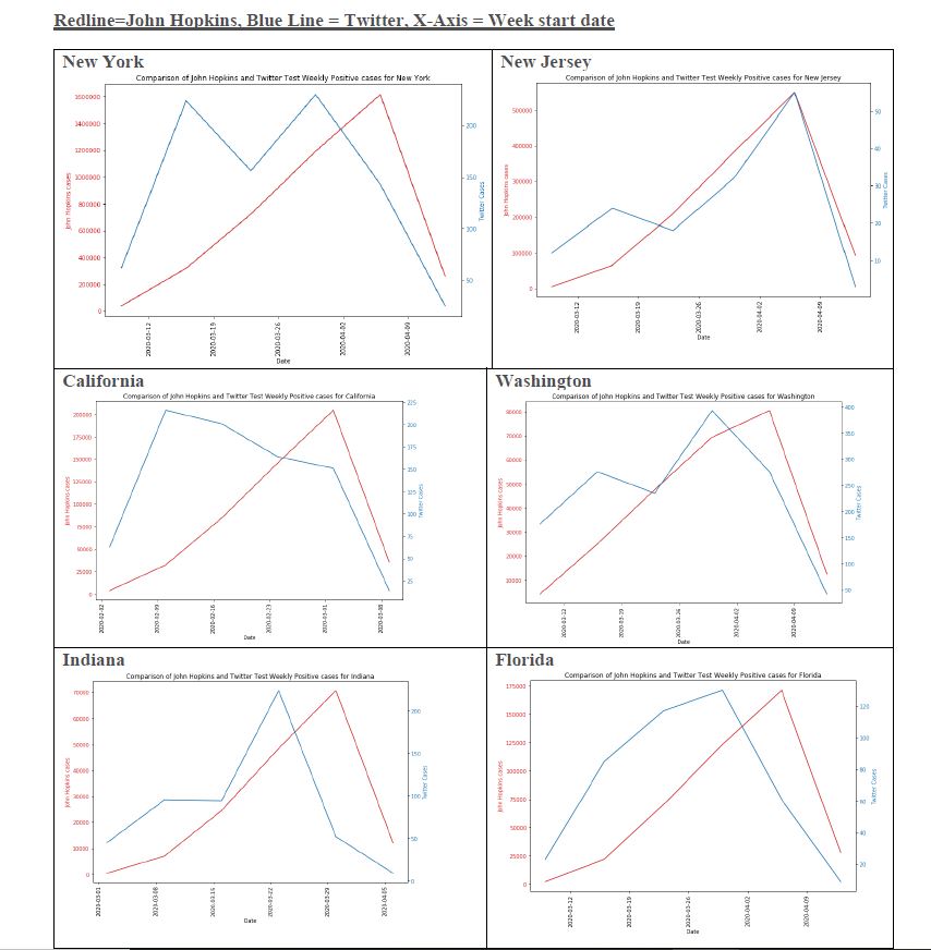 In the sample below, three months of unstructured data - i.e Coronavirus Tweets - were downloaded and the messy tweets were cleaned. The insights show a comparision between Coronavirus trend found from Tweet analysis (blue line) vs official John Hopkins data (red line). They match very closely.